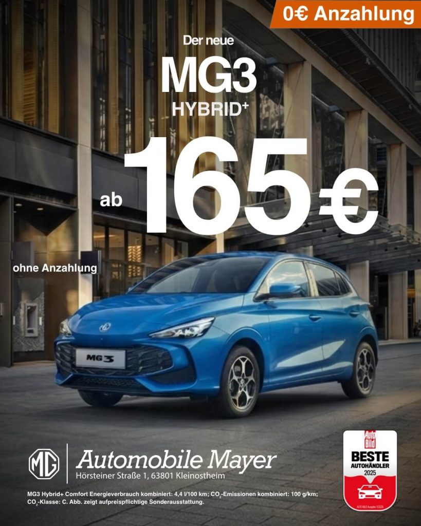 Gepostet auf Holger KaiserTrustindex überprüft, ob die Originalquelle der Bewertung Google ist. Guter Service und freundliche MitarbeiterGepostet auf Andreas JakubekTrustindex überprüft, ob die Originalquelle der Bewertung Google ist. Eine Menge Personal . Alle freundlich. Immer aufmerksam und interessiert an Problemlösung. TopGepostet auf Ludwig MisbachTrustindex überprüft, ob die Originalquelle der Bewertung Google ist. Ich hatte letzte Woche einen MG3 in der Werbung bei Automobile Mayer gesehen. Ich am nächsten Tag hingefahren Auto angeschaut ins Büro rein freundlich empfangen und und informiert worden. Ich habe für mein Auto einen guten Preis bekommen, und den neuen gekauft. Vom Empfang bis zu dem Kaufvertrag für den neuen alles perfekt. Großes Lob an alle bei automobile Mayer. PS. Habe den neuen drei Tage später abholen können 1a Service.Gepostet auf zzz gggTrustindex überprüft, ob die Originalquelle der Bewertung Google ist. Hab bis jetzt 2 neue Auto dort gekauft und wenn ich einer dritten brauchen sollte würde ich Sie auch noch Dort kaufen (hab bis jetzt nichts zur bemängeln) Ob Beratung Kauf oder Service sind sehr Nett, schnell und kompetent und vor allem bieten prinzipiell gute Angebote die nicht ignorieren kann daher sehr verlockend. Hab vor kurz einer Vitara Hybrid gekauft, vom Ausstattung bis zum Preis es gab KEINER in Aschaffenburg der im diesem Klasse einer bessere Angebote zur Zeitpunkt hatte (wahrscheinlich prinzipiell) Suzuki und Mitsubishi sind synonym für Qualität und Leistung, bei andere Hersteller/Marken Sie vermarkten in erste Linie "NAME" und muss man beten ob mehr Extras bekommen kann für gleiches Geld oder sogar mehr, bei Suzuki ist selbstverständlich an jeder Kunde Komfort zur bieten die er verdient ohne zur fragen, fast als Standard, in 2025 selbstverständlich. 👍Gepostet auf Marco KTrustindex überprüft, ob die Originalquelle der Bewertung Google ist. Engagierte Mitarbeiter, große Auswahl an neuen und gebrauchten Autos. Gute WerkstattGepostet auf Der PaulTrustindex überprüft, ob die Originalquelle der Bewertung Google ist. Super freundliche Mitarbeiter
